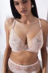 Sublime M to miękki biustonosz na drucie, który łączy w sobie najlepsze cechy naszego push-upa i braletki. Ten fason stworzy dla Ciebie pełny dekolt, zapewniając jednocześnie lekkość i miękkość w użytkowaniu jaką daje braletka. Jasnobeżowa koronka, której kolor pięknie współgra z każdym odcieniem skóry sprawdzi się bez względu na okazję. Połącz biustonosz z pasującymi figami z kolekcji Sublime aby stworzyć ekskluzywną stylizację i lśnij!